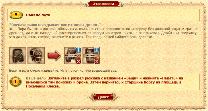 Внимательно прочитав текст диалога с правителем, нажмите «Далее» и вы приступите к выполнению первого задания. Об этом вам сообщат в чате.