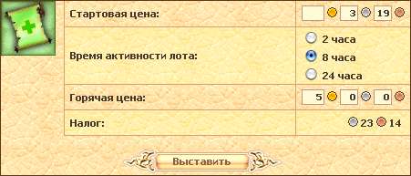 1. Для выставления лота также необходимо внести авансом сумму, достаточную для выкупа всех требуемых предметов в заявке. Если заявка не будет выкуплена, вы получите свои деньги обратно. Все заявки выставляются на срок 24 часа.