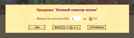 ![]() Вам будет предложено продать один предмет или несколько. Выберите нужное количество или нажмите «ВСЕ», если хотите продать все имеющиеся предметы из этой ячейки инвентаря.
