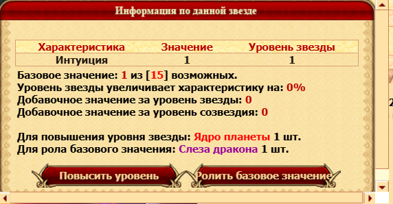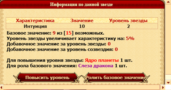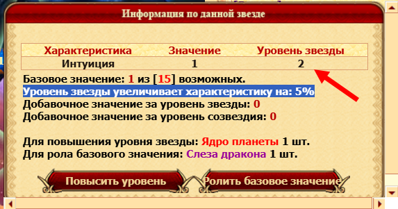 Повышая уровень звезды вы увеличиваете в процентном значении базовые характеристики текущей звезды.