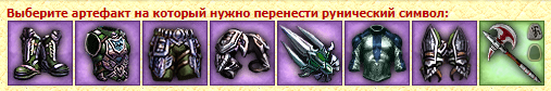 В том случае, если вы выбрали "Перенос рунического символа на другую вещь" - то перед вами откроется список предметов с руническими символами.